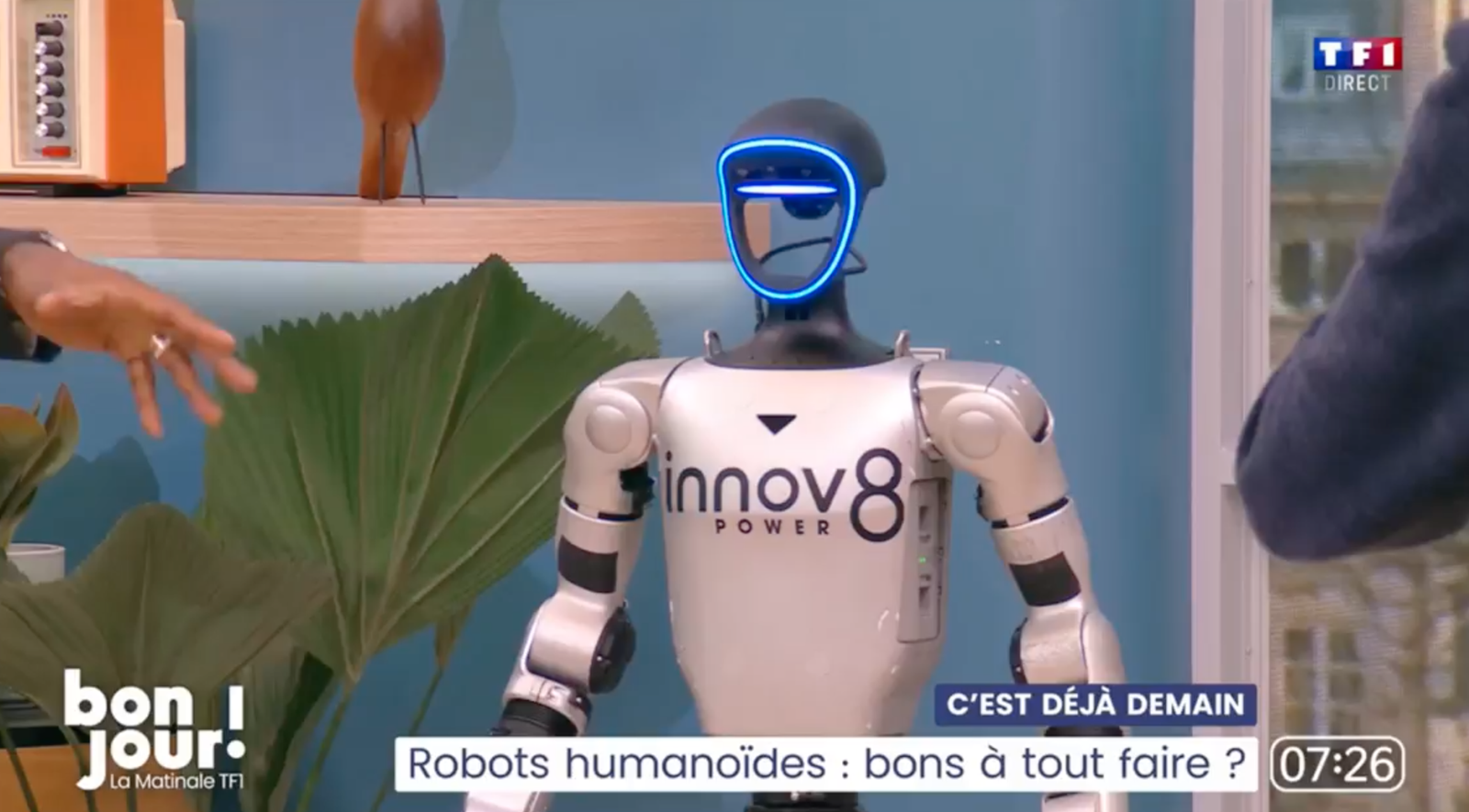 04/03/2026 Ce matin, le robot humanoïde G1 de Unitree Robotics, déployé par Innov8, était en direct sur TF1 dans Bonjour...